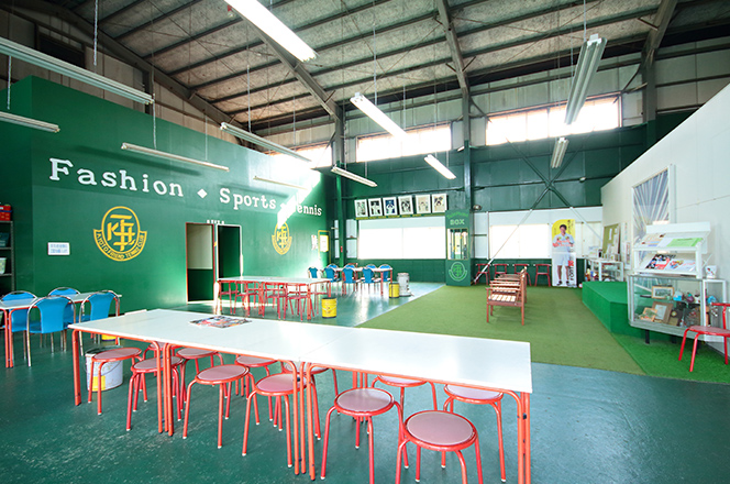 休憩スペース。コミュニケーションの場としてご利用いただいております。簡易な更衣室もあります。